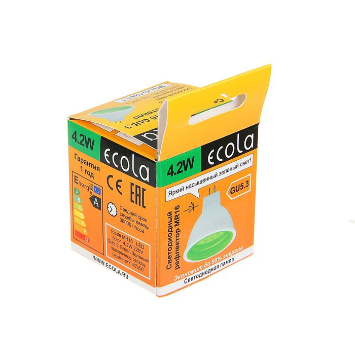 Лампа светодиодная Ecola, MR16, GU5.3, 4.2 Вт, прозрачное стекло, зеленый свет