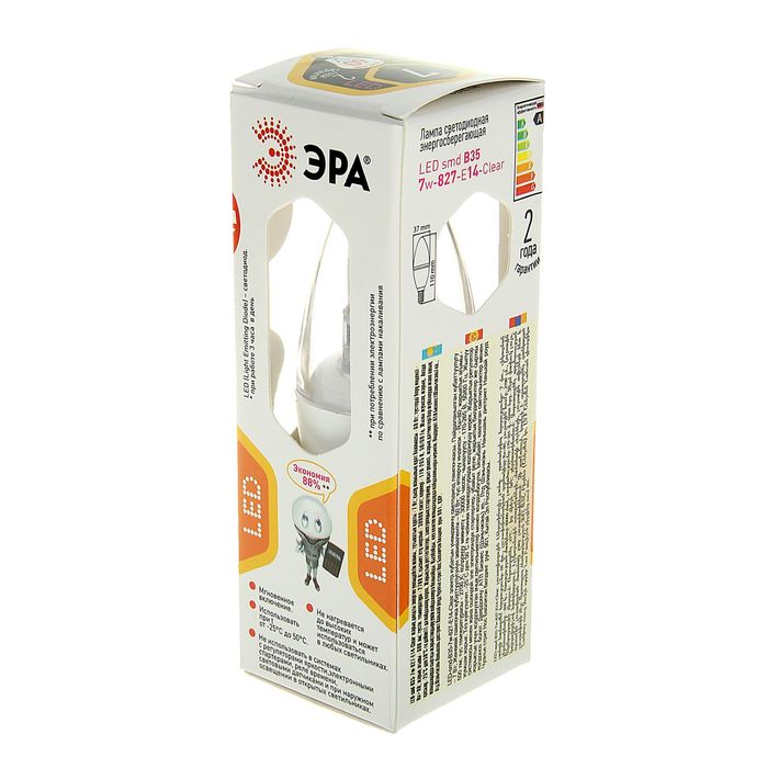 Лампа светодиодная ЭРА, B35, 7 Вт, 2700 К, E14, прозрачная