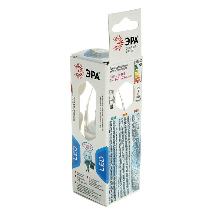 Лампа светодиодная ЭРА, B35, 7 Вт, 4000 К, E27, прозрачная
