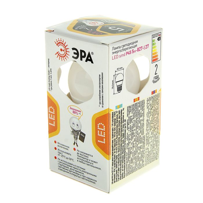 Лампа светодиодная ЭРА, P45, 5 Вт, 2700 К, E27