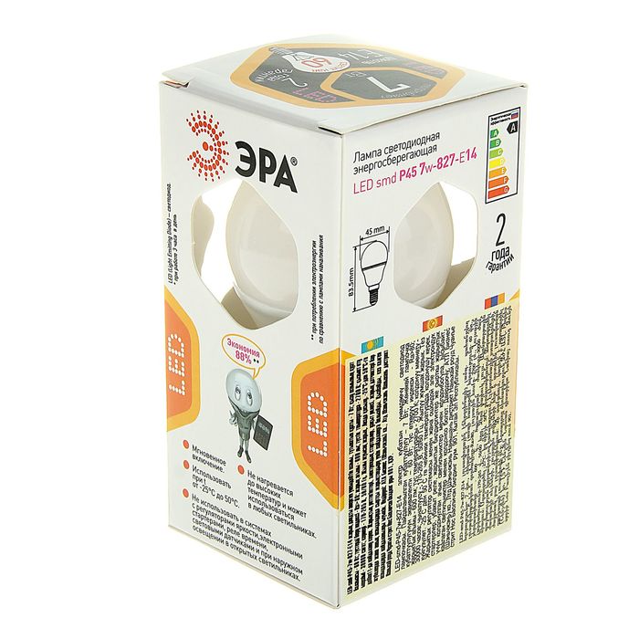 Лампа светодиодная ЭРА, P45, 7 Вт, 2700 К, E14