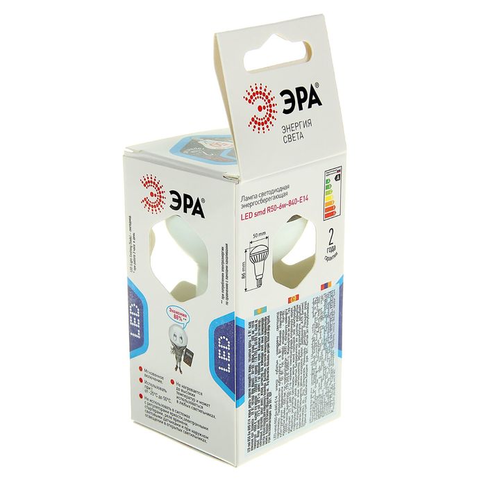 Лампа светодиодная ЭРА, R50, 6 Вт, 4000 К, E14