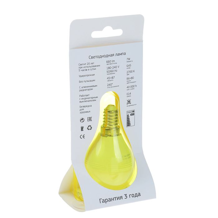 - Световая температура: 2 700 К.