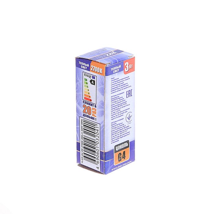 Лампа светодиодная Jazzway, G4, 3 Вт, 200 Лм, 2700 K, PLED-G4
