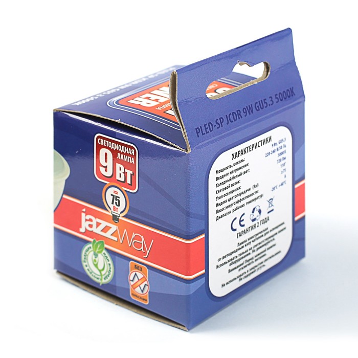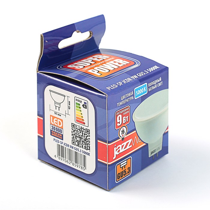 Лампа светодиодная Jazzway, MR16, GU5.3, 9 Вт, 720 Лм, 5000 K, PLED-SP