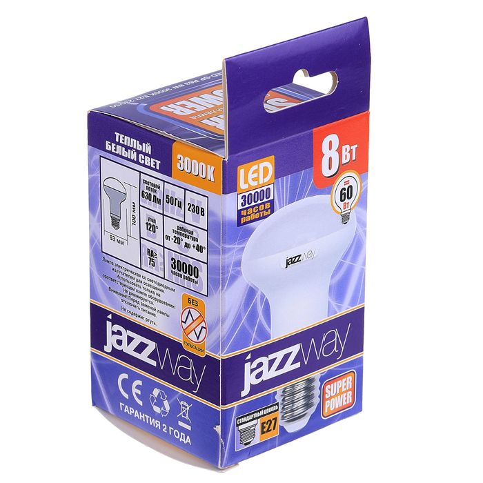 Лампа светодиодная Jazzway, R63, E27, 8 Вт, 3000 K, PLED-SP
