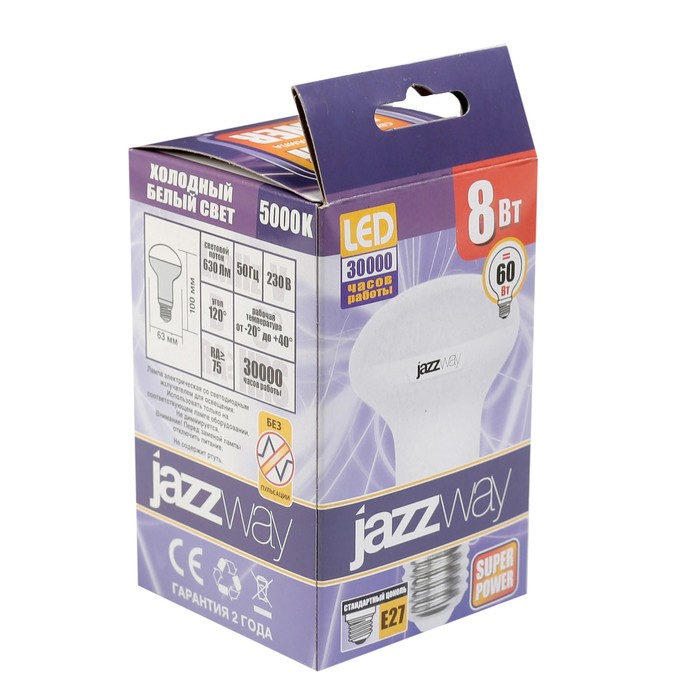 Лампа светодиодная Jazzway, R63, E27, 8 Вт, 5000 K, PLED-SP