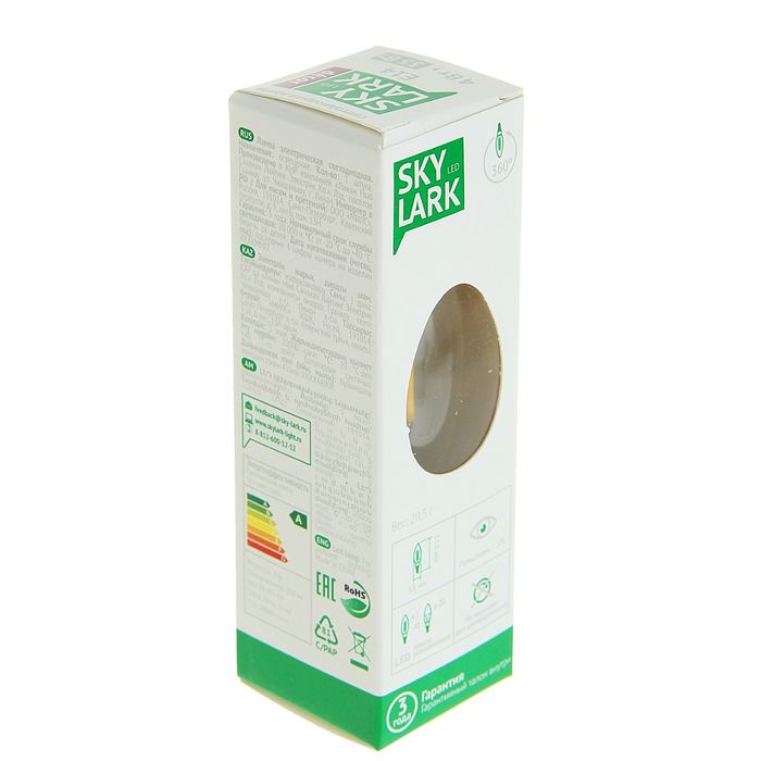 Лампочки из линейки Sky Lark Basic оснащены светодиодами типа FILAMENT. Подходящее решение для открытых люстр и плафонов. Прозрачные лампы дают яркий сияющий свет. Отличаются от серии Simple уменьшенной пульсацией и цветовой температурой 2700 К, за счет чего достигается минимальная нагрузка на зрение и нервную систему. Светодиоды FILAMENT имеют стильный дизайн и красиво смотрятся даже при выключенной лампочке.