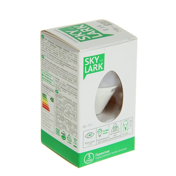 Лампа светодиодная Sky Lark, E14, G45, 7 Вт, 2700 K, теплый белый