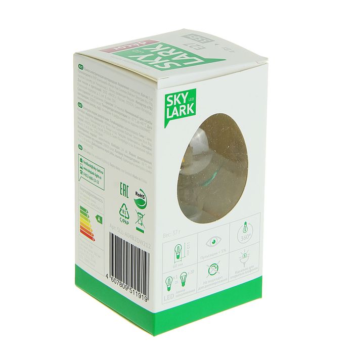 Лампа светодиодная Sky Lark, E27, A60, 4 Вт, 2700 K, теплый белый