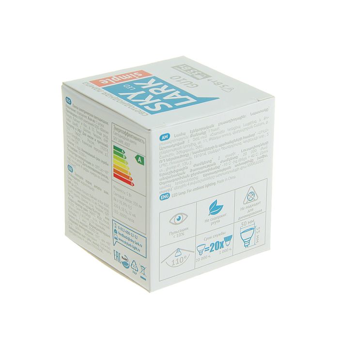 Лампа светодиодная Sky Lark Simple, GU10, MR16, 5 Вт, 3000 K, теплый белый