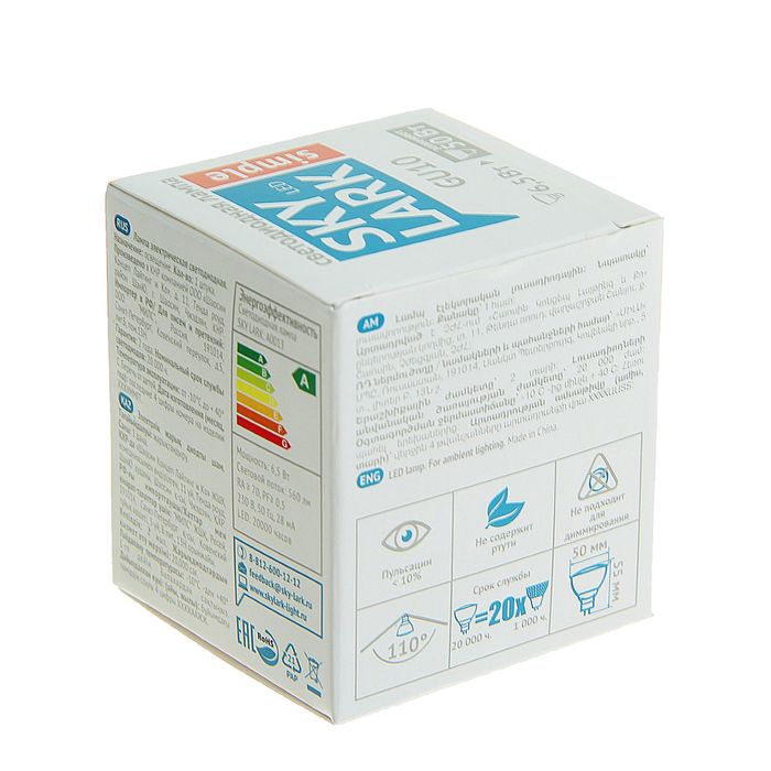 Лампа светодиодная Sky Lark Simple, GU10, MR16, 7 Вт, 4000 K, холодный белый