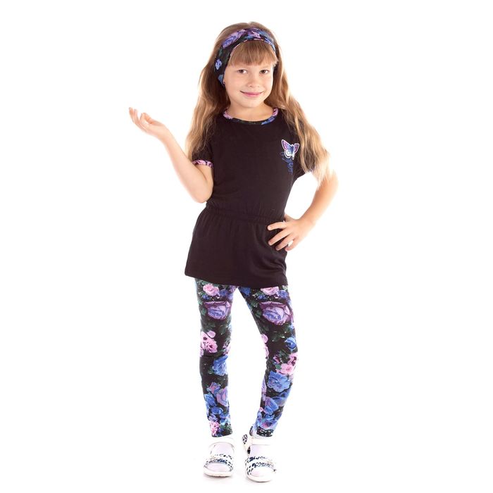 Легинсы для девочки "Волшебная радуга", рост 122 см, цвет чёрный, принт розы ДРЛ894820н