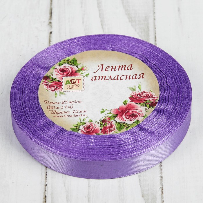 Лента атласная, 12мм, 23±1м, №21, цвет сиреневый