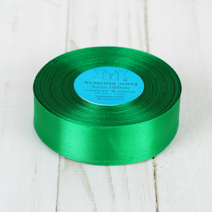 Лента атласная, 25мм, 33±2м, №035, цвет зелёный