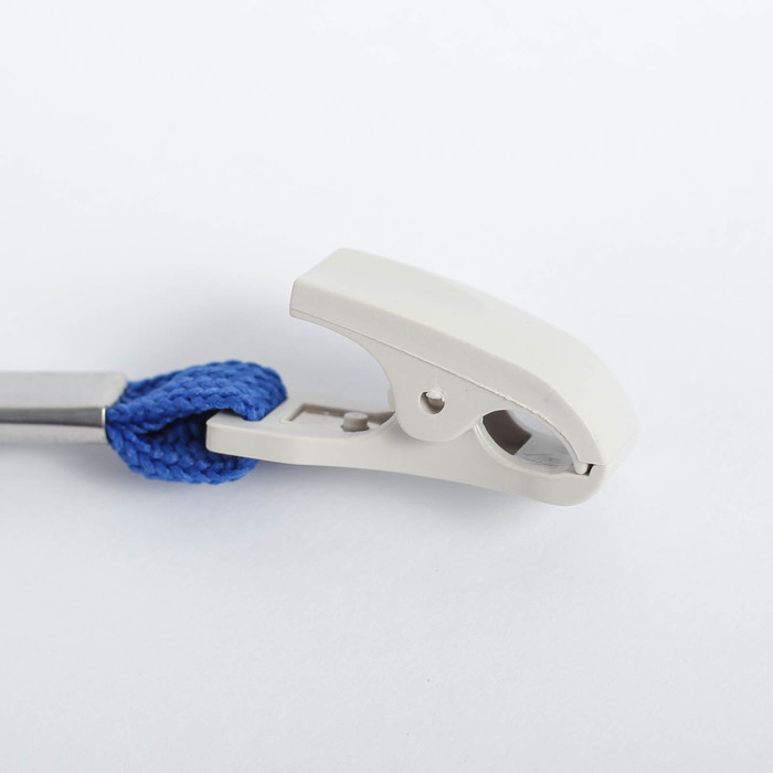 Лента для бейджа ширина-10мм, длина-80см с пластиковой серой прищепкой и фиксатором СИНЯЯ