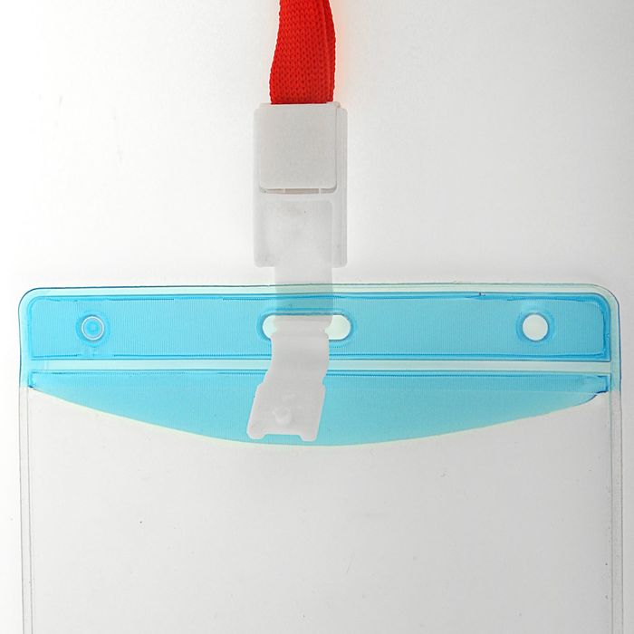 Лента для бейджа ширина-10мм, длина-80см с пластиковым зажимом КРАСНАЯ