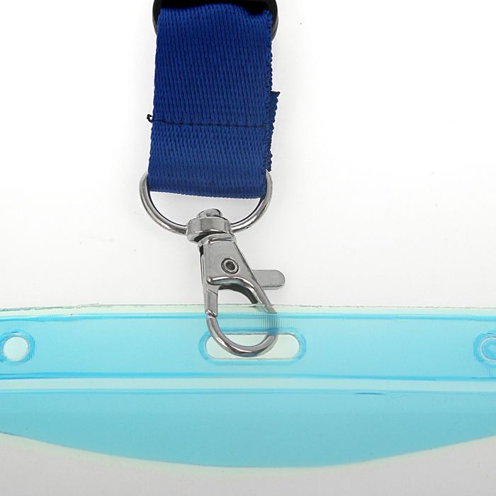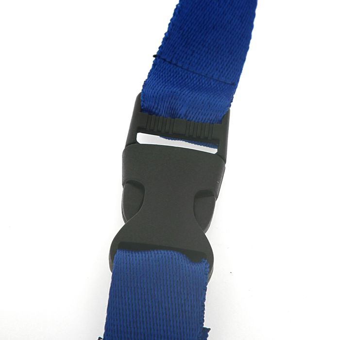 Лента для бейджа ширина-20мм, длина-80см с металлическим карабином и 2-мя пластиковыми застежками СИНЯЯ