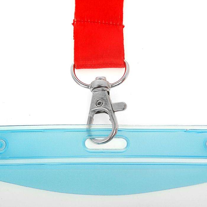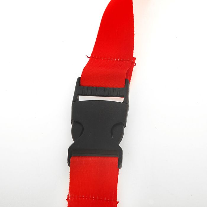 Лента для бейджа ширина-20мм, длина-80см с металлическим карабином и пластиковой застежкой КРАСНАЯ