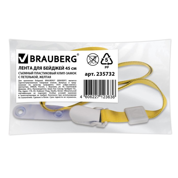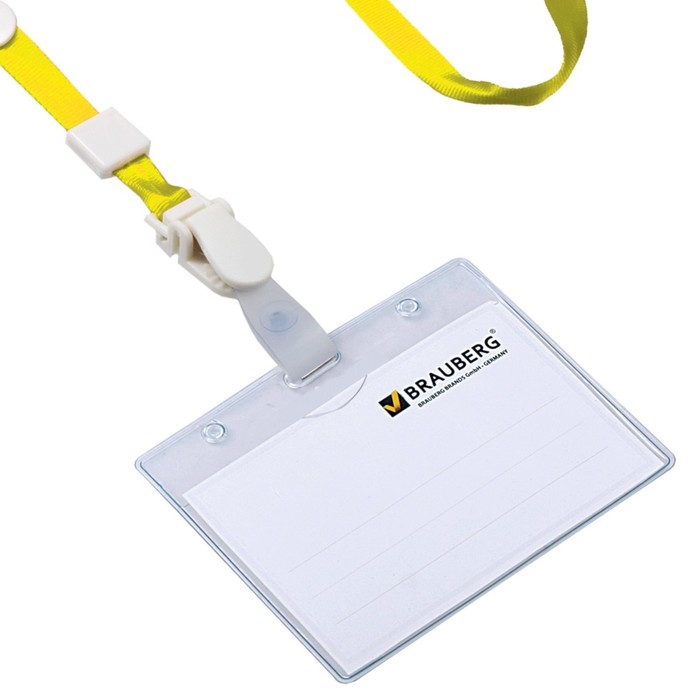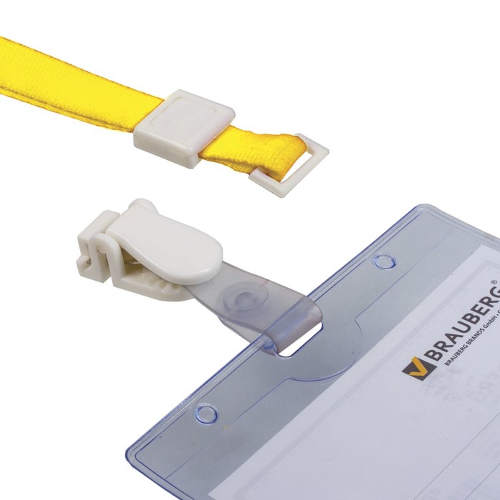 Лента для бейджей 45см, съемный пластиковый клип-замок с петелькой, желтая