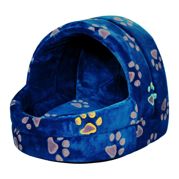 Лежак - пещера Jimmy, 40 x 35 x 35 cm, blue — оригинальная вещица для вашего питомца. Ежедневный уход за вашим любимцем и дрессировка превратятся в удовольствие с нашими товарами. Порадуйте себя или своих знакомых забавной новинкой или подарите её человеку, который давно планировал завести четвероногого друга.