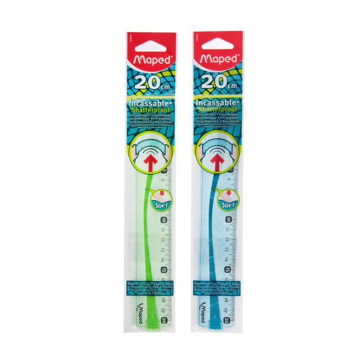 Линейка гибкая 20 см Maped Flex, с резиновой вставкой, неломающаяся 244020 может понадобиться при изучении любого школьного предмета. Провести прямую линию и начертить отрезок на уроке математики? Легко! Подчеркнуть подлежащее, сказуемое или деепричастный оборот в домашнем задании по русскому языку? Проще простого!