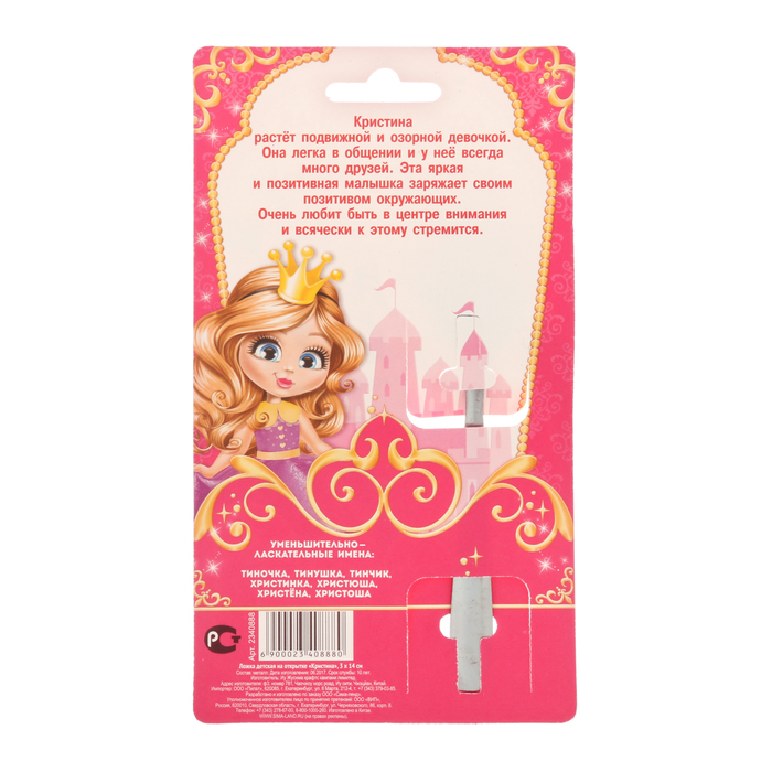 От качества посуды зависит не только вкус еды, но и здоровье человека. Ложка детская на открытке "Кристина" — товар, соответствующий российским стандартам качества. Любой хозяйке будет приятно держать его в руках. С нашей посудой и кухонной утварью приготовление еды и сервировка стола превратятся в настоящий праздник.