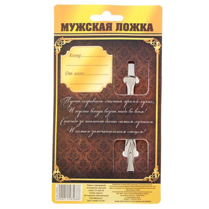 Ложечка преподносится на яркой дизайнерской открытке, на обороте вы найдёте место для подписи, что сделает подарок ещё более личным.