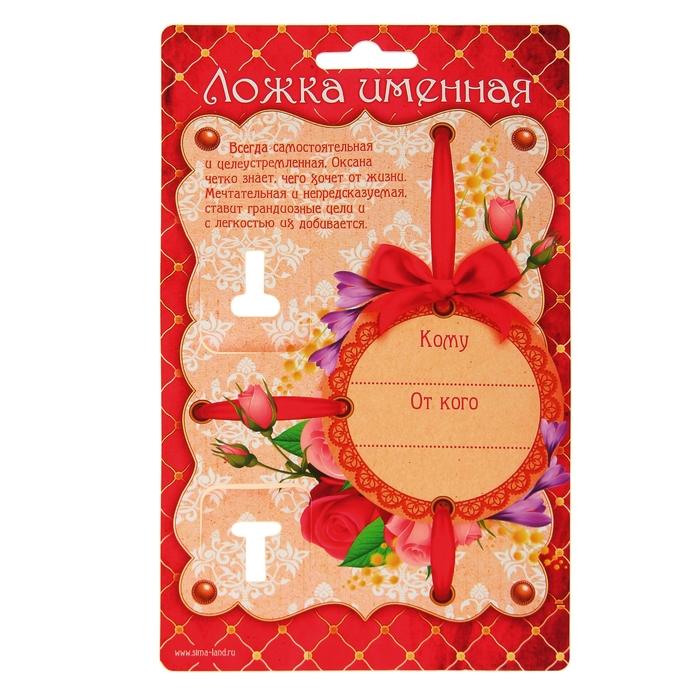 Именная ложка - это не только функциональный подарок на день рождения, профессиональный праздник или в любой другой день, но и оригинальный предмет интерьера. Надпись нанесена на черпак при помощи лазера, на рукоятке ложки – золотой узор. Дизайнерское оформление открытки позволит выбрать подарок по случаю и торжественно вручить его адресату.