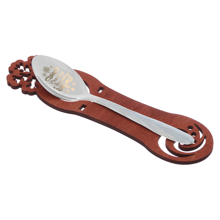 Ложка новый год "Счастья и здоровья" на деревянной подложке