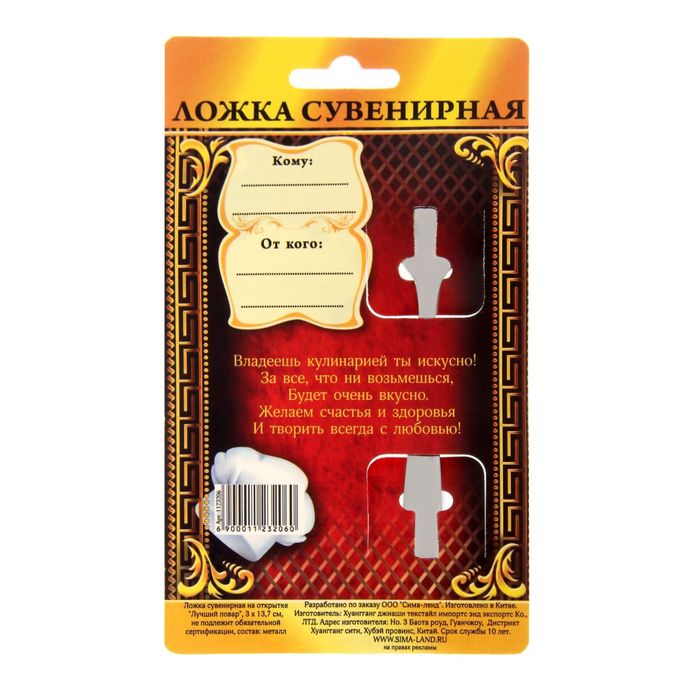 Ложка сувенирная на открытке "Лучший повар"