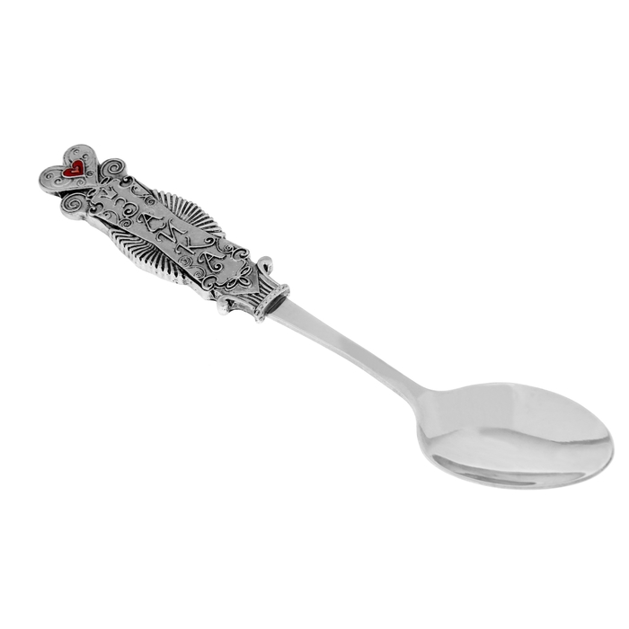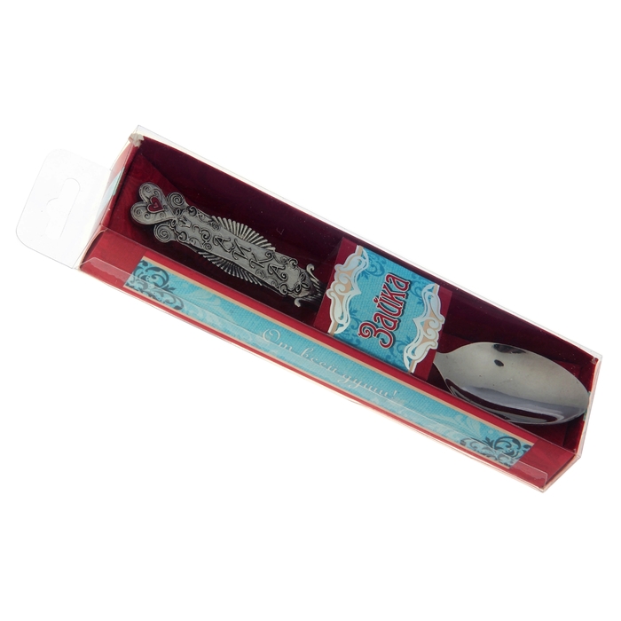Ложка с фигурной ручкой, на которой вырезан комплимент, изготовлена из нержавеющий стали, – это позволяет использовать подарок по прямому назначению.
