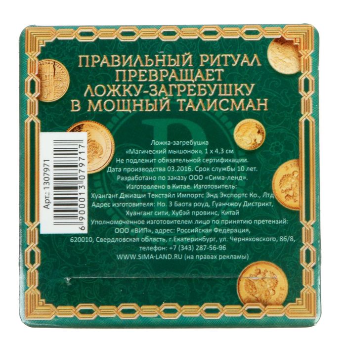Изделие, которое будет защищать и приумножать ваши доходы. Чтобы активировать его, положите сувенир в кошелёк или сумочку и произнесите несложный заговор, указанный на упаковке.