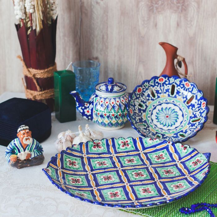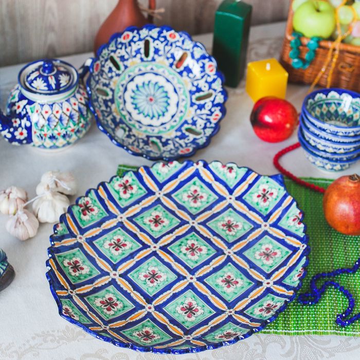 Риштан — город на востоке Узбекистана, один из древнейших в Ферганской долине. С давних времён Риштан славится своим гончарным искусством изготовления цветной керамики. Красноватую глину для изделия добывают в самом городе. Мастера утверждают, что их глина настолько высокого качества, что даже не нуждается в предварительной обработке. Дополните коллекцию кухонных аксессуаров пряными восточными нотами.