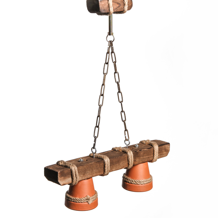 Люстра-подвес деревянная "Садовая", 2 керамических плафона, микс