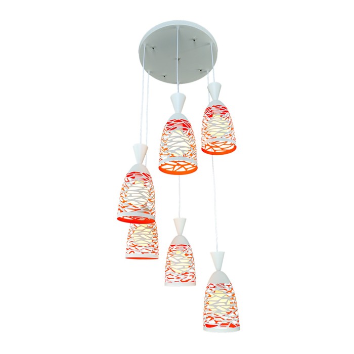 Люстра подвесная "Дана" 6 ламп Е27 белый,оранжевый 57х57х255