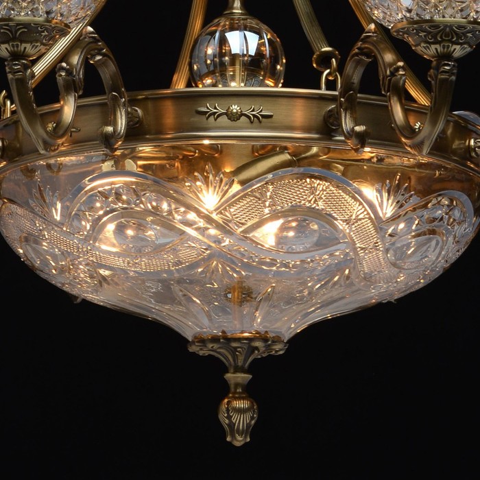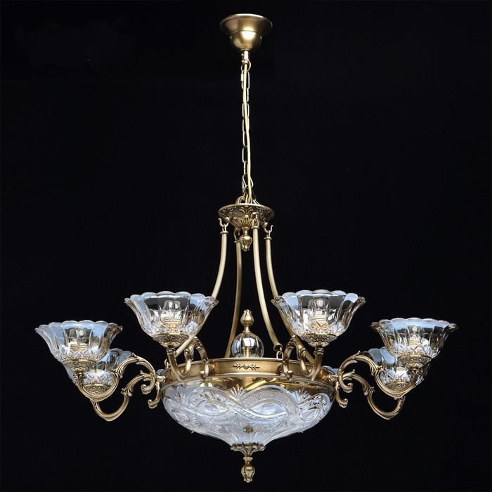 Люстра подвесная "Паула" 8x60W+4x40W E27+E14 латунь 100x100x272см