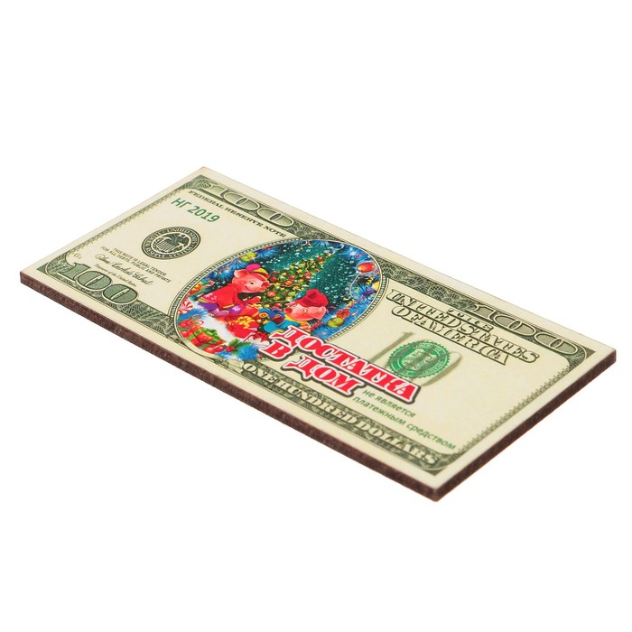 Магнит деревянный доллар "Доставка в дом" с голографией, 11,8х5,7см, Символ года 2019