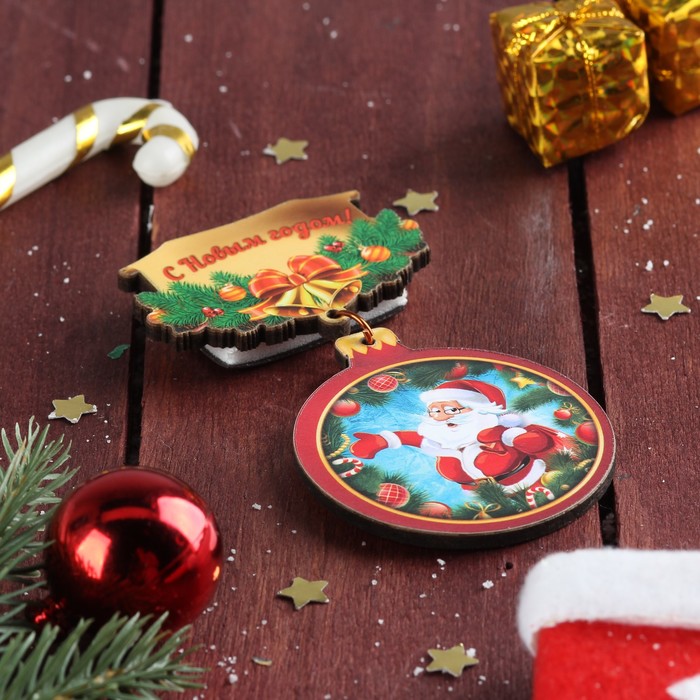 Магнит однослойный дерево "Шарик у ёлки. Дед Мороз" 10х5,5 см