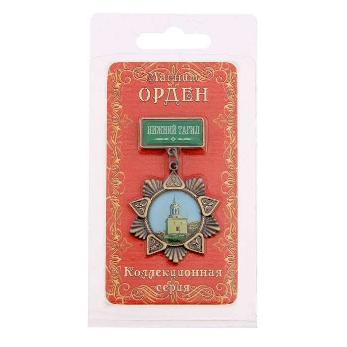 Магнит-орден «Нижний Тагил» — прекрасный коллекционный подарок для вас и ваших близких. Эксклюзивная резная форма привлечёт внимание каждого гостя, а яркая вставка со смоляной заливкой напомнит о путешествии по любимым местам.