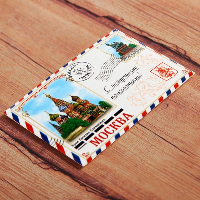 На сувенире изображена Москва — величественная и многоликая столица нашей родины. Здесь старые мощёные улочки, которые помнят ещё царей и императоров, переходят в широкие проспекты с небоскрёбами и бизнес-центрами. Москва прекрасна в любое время года! Она, с присущим русской душе размахом, открывает перед путешественником свои красоты, поражая воображение великолепием древних зданий и соборов.