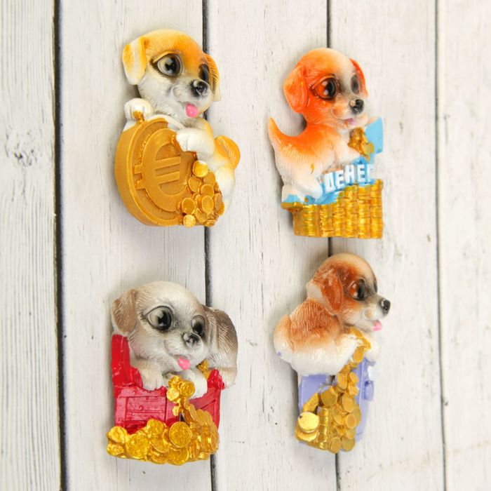 Побывали в зоопарке? Да нет же, просто дошли до холодильника, а там — Магнит полистоун "Маленький щенок с золотыми монетами" МИКС 4,5х5 см! Соберите целую коллекцию милых представителей животного мира.