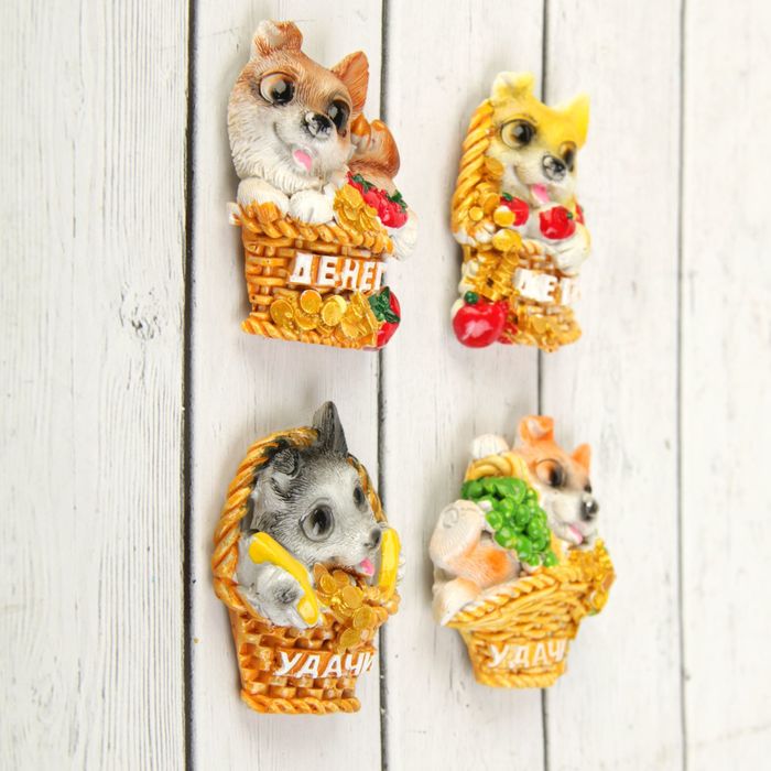 Побывали в зоопарке? Да нет же, просто дошли до холодильника, а там — Магнит полистоун "Маленький щенок в корзинке с фруктами и монетками" МИКС 5х5 см! Соберите целую коллекцию милых представителей животного мира.
