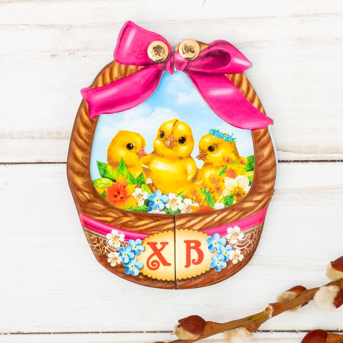 Магнит раздвижной в форме корзинки "Цыплята"