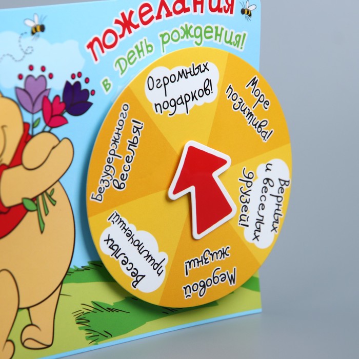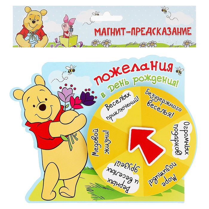 Магнит-рулетка для гадания на открытке "Пожелания в день рождения", Медвежонок Винни