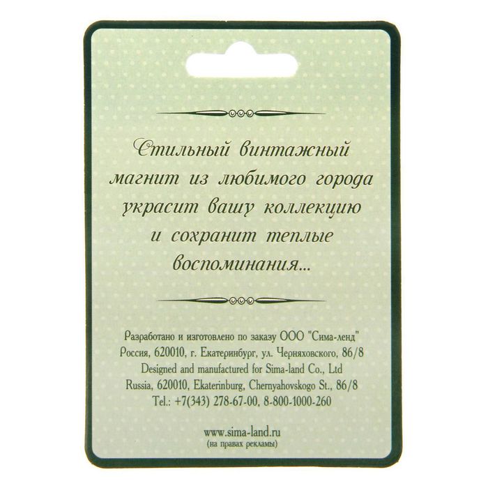Стильный винтажный магнит из любимого города украсит вашу коллекцию и сохранит тёплые воспоминания о полюбившихся пейзажах, достопримечательностях и улицах. Классическая золотая рамка сделана из акрила. Стеклянная вставка-линза придаёт объёмность картинке.