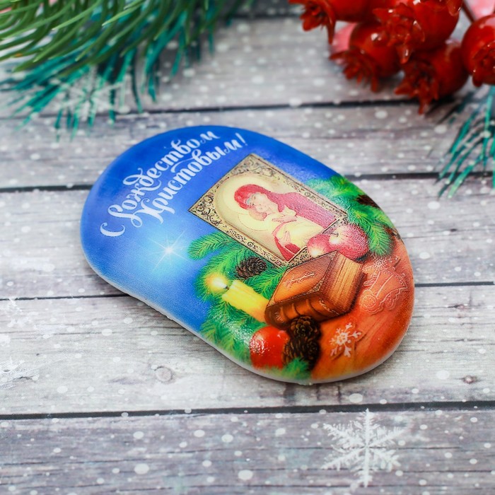 Магнит в форме гальки «С Рождеством Христовым», 4,5 х 7 см