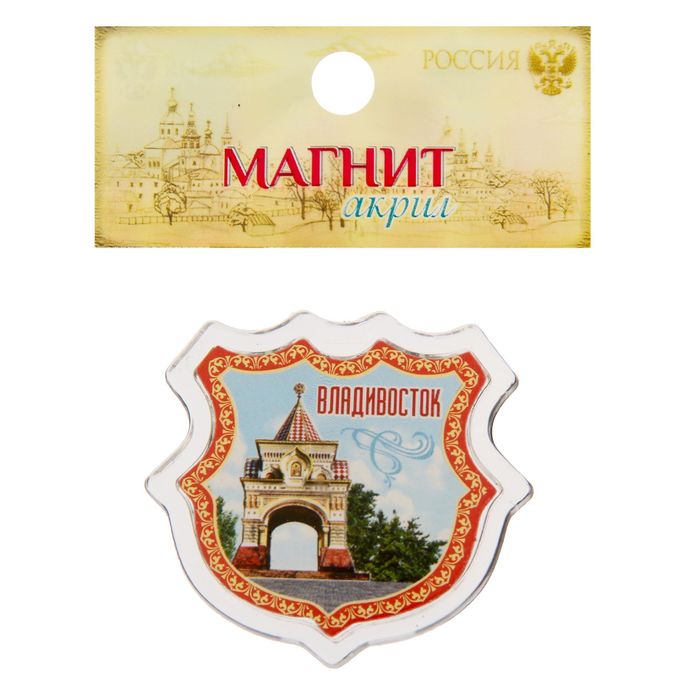 На магните изображена Николаевская триумфальная арка, возведённая в 1891 году во Владивостоке в честь визита императора Николая II, тогда ещё 23-летнего цесаревича. Её строили всем миром. Арка объединила лучших предпринимателей Владивостока и Приморского края, купцов, промышленников и горожан. Правда простояло сооружение всего 30 лет и было разрушено в годы советской власти. Спустя почти век жители Владивостока решили возродить историю. Восстановление памятника совпало со 135-летием со дня рождения и 85-летием трагической гибели последнего русского императора и его семьи.