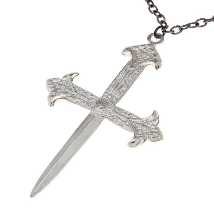 Замечательный образец сувенирного оружия. Средневековый нож-крест на цепочке станет ценной находкой для знатока и коллекционера. Выпущенный на известной итальянской фабрике La Balestra, он выглядит так, словно еще буквально вчера украшал собой экспозицию какого-нибудь известного европейского музея. Порадуйте близкого человека столь изысканным и неординарным подарком!