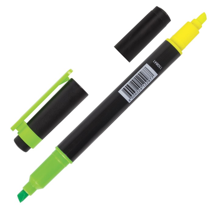 Маркер текстовыделитель двусторонний 4мм BRAUBERG, лимонный/зелёный